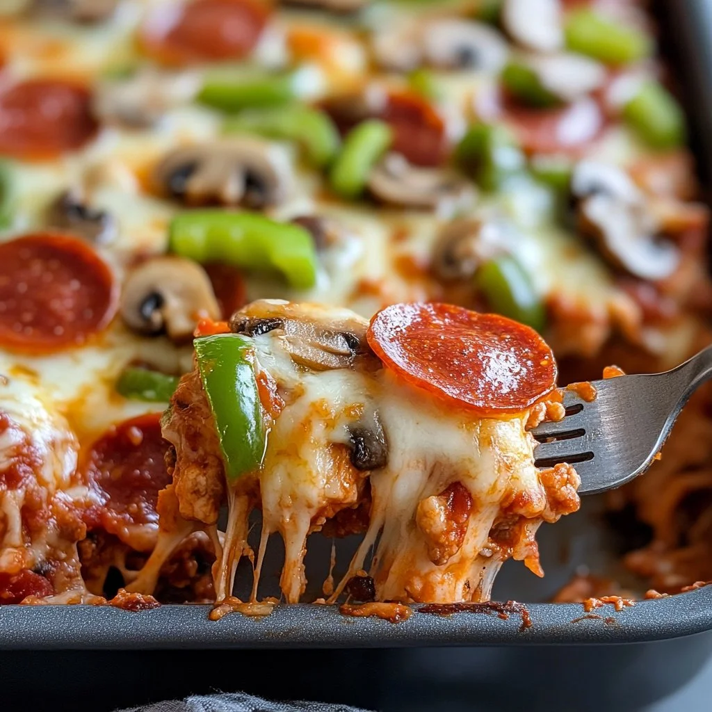 A delicious and comforting pizza casserole made without the crust, perfect for low carb diets.