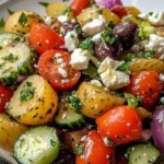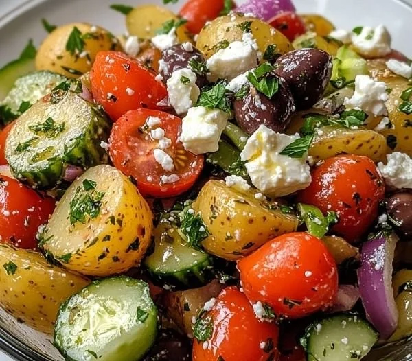 A refreshing and flavorful Mediterranean potato salad featuring tender potatoes, cherry tomatoes, feta cheese, and fresh herbs.