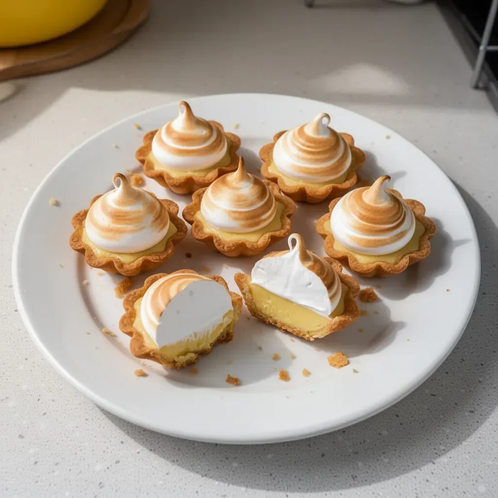 Delightful mini lemon meringue tarts with a crispy pastry, vibrant lemon curd filling, and fluffy meringue topping.