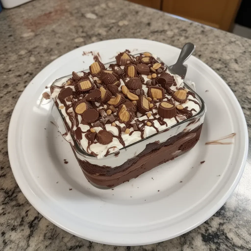 A rich and creamy no-bake dessert featuring layers of peanut butter mousse and chocolate ganache.