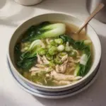 A comforting bowl of bok choy chicken soup that brings warmth and flavor, perfect for chilly evenings.