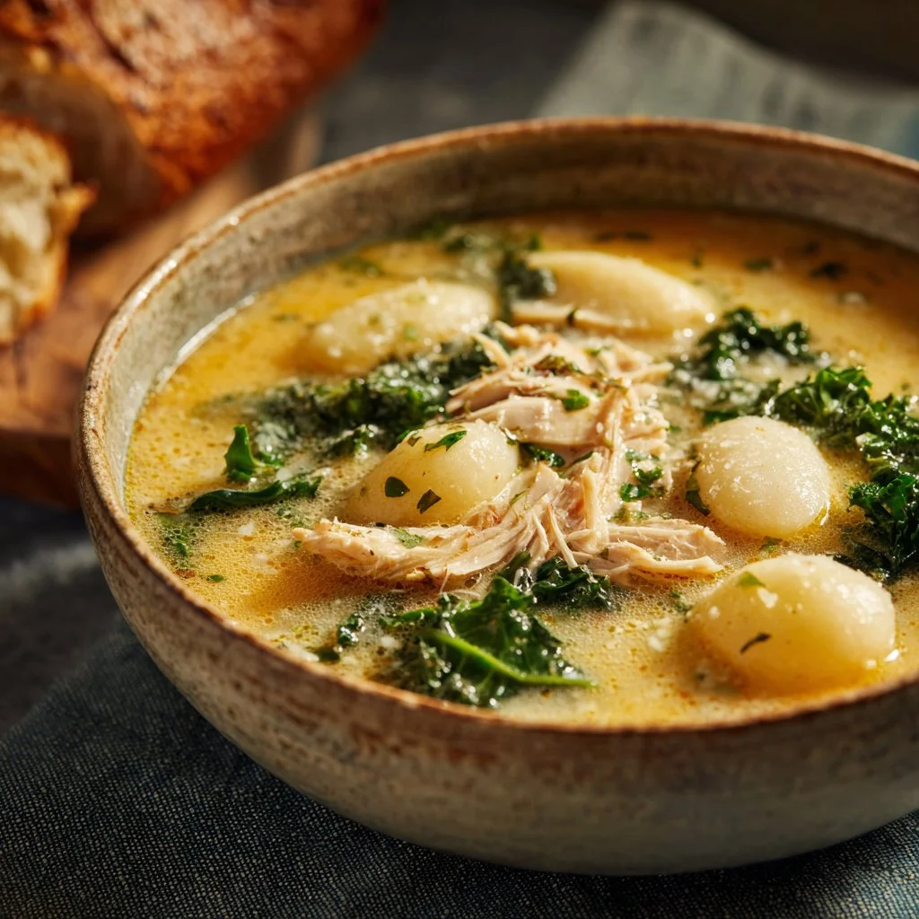 A warm and comforting chicken gnocchi soup reminiscent of Olive Garden’s classic dish, featuring tender chicken, fluffy gnocchi, and vibrant vegetables.