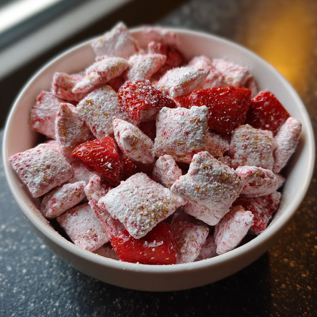 Pair your Quick Strawberry Shortcake Puppy Chow with a variety of snacks for the ultimate treat table. Serve alongside fresh fruit like strawberries or raspberries to balance sweetness. You might also complement it with savory elements like cheese cubes for a balanced appetizer platter.
