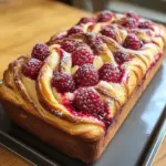A soft and buttery brioche loaf swirled with tart raspberry jam, perfect for brunch or as a sweet snack.