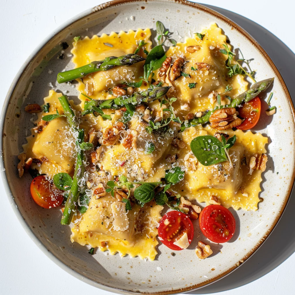 Discover how to make delicious Ravioli with Tomatoes, Asparagus, Garlic, and Herbs. Follow our easy recipe for a flavorful, fresh dish that’s sure to impress!