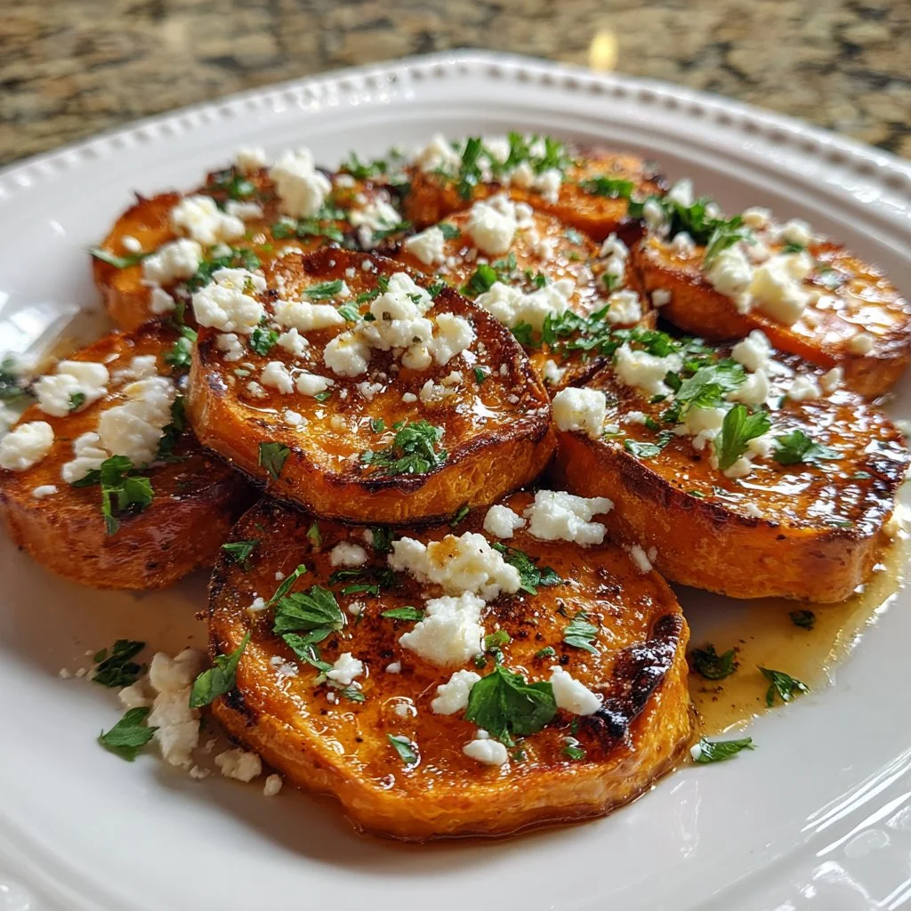 - Roasted Sweet Potato Rounds with Honey & Feta