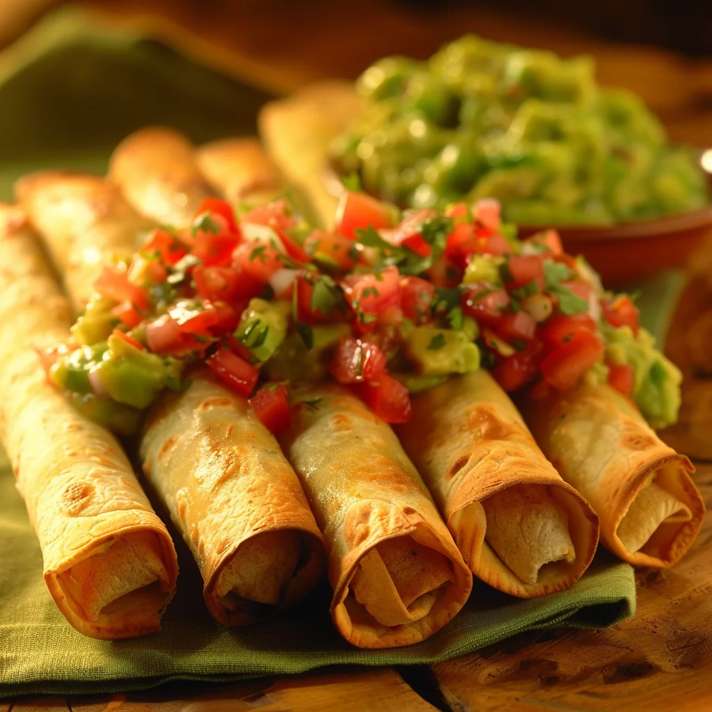 Learn how to make delicious rolled taquitos with fresh salsa and guacamole from scratch. Perfect for any occasion, these homemade Mexican treats will impress your guests!