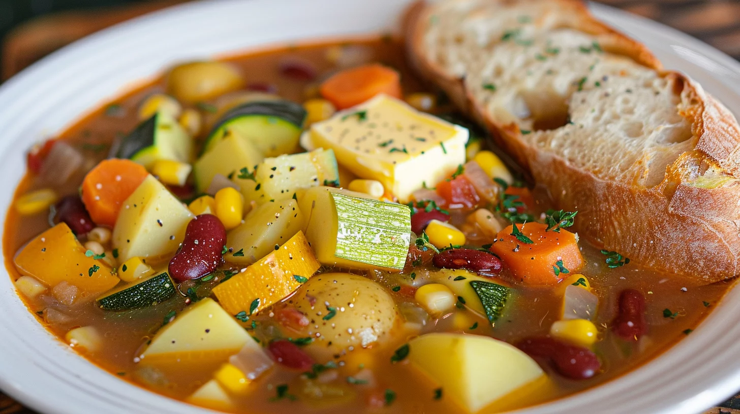 As your Rustic Vegetable Soup simmers, savor the aroma filling the kitchen. This is your chance to perfect the dish, ensuring each ingredient has a chance to shine. The zucchini, yellow squash, and sweet corn should be added slowly, allowing them to cook just until tender, contributing their unique textures and flavors.