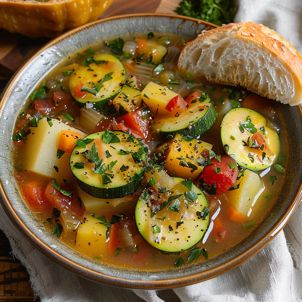 Learn how to make a delicious Rustic Vegetable Soup From Scratch with this easy recipe. Perfect for a cozy night in, full of hearty and wholesome flavors.