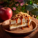 A delightful dessert that combines creamy cheesecake, spiced apple filling, and a crunchy graham cracker crust, all topped with rich salted caramel sauce.