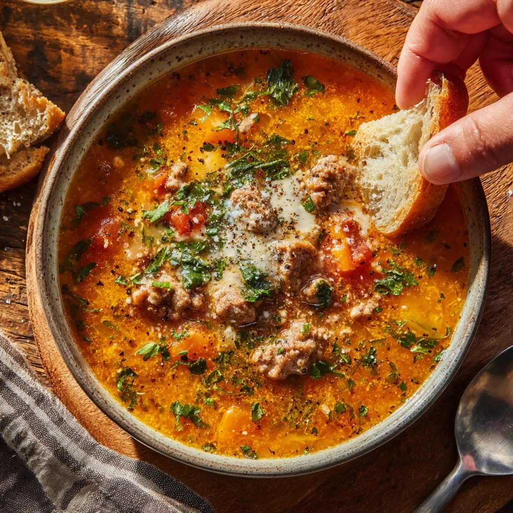 When serving sausage soup, presentation counts. Ladle the soup into bowls and finish with a sprinkle of freshly chopped parsley and additional Parmesan cheese. This not only enhances the visual appeal but also adds extra flavor.