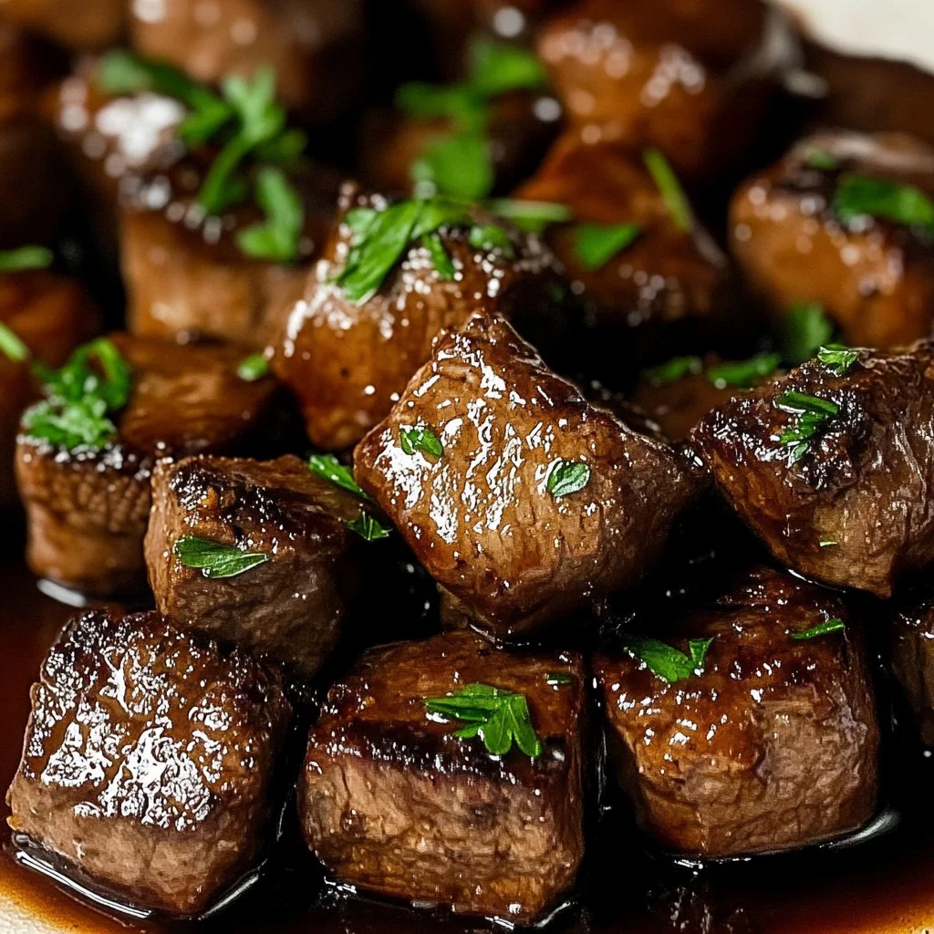 Presentation makes a significant impact, and savory steak bites shine when plated creatively. Arrange the bites on a clean platter, artfully scattering the fresh herbs on top. The vibrant colors from the herbs contrast beautifully with the rich, deep browns of the meat.