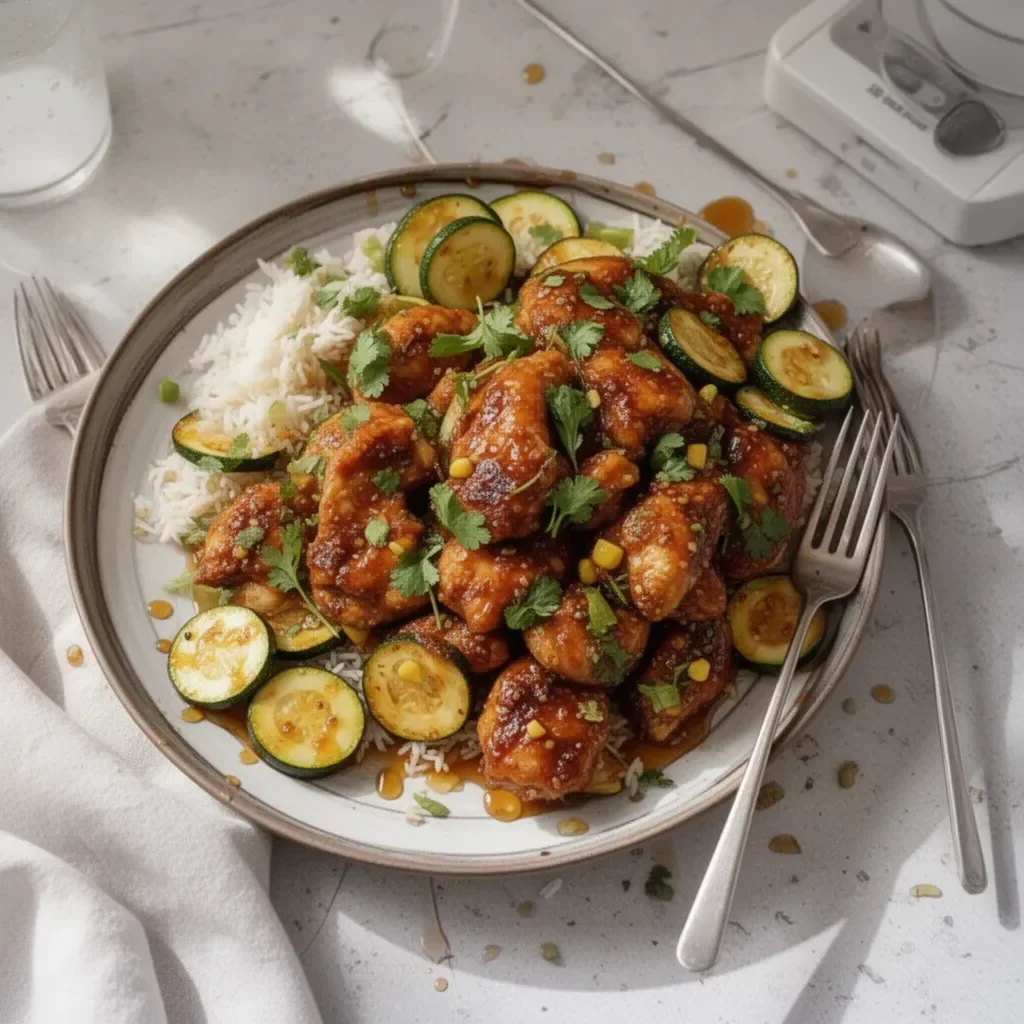 The Sheet Pan Hot Honey Garlic Chicken and Zucchini offers a delightful eating experience and an easy way to bring loved ones together around the dinner table, enriched with flavor and comfort.