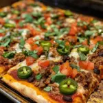 Sheet pan taco pizza transforms traditional taco flavors into a fun, shareable format that invites everyone to dig in. With each bite, you get a perfect blend of seasoned meat, melty cheese, and a burst of fresh toppings. It’s a dish that truly celebrates togetherness. Whether it’s a weeknight dinner or a special occasion, this taco pizza is sure to make the table feel festive, generating conversations and laughter that linger long after the last slice is gone.