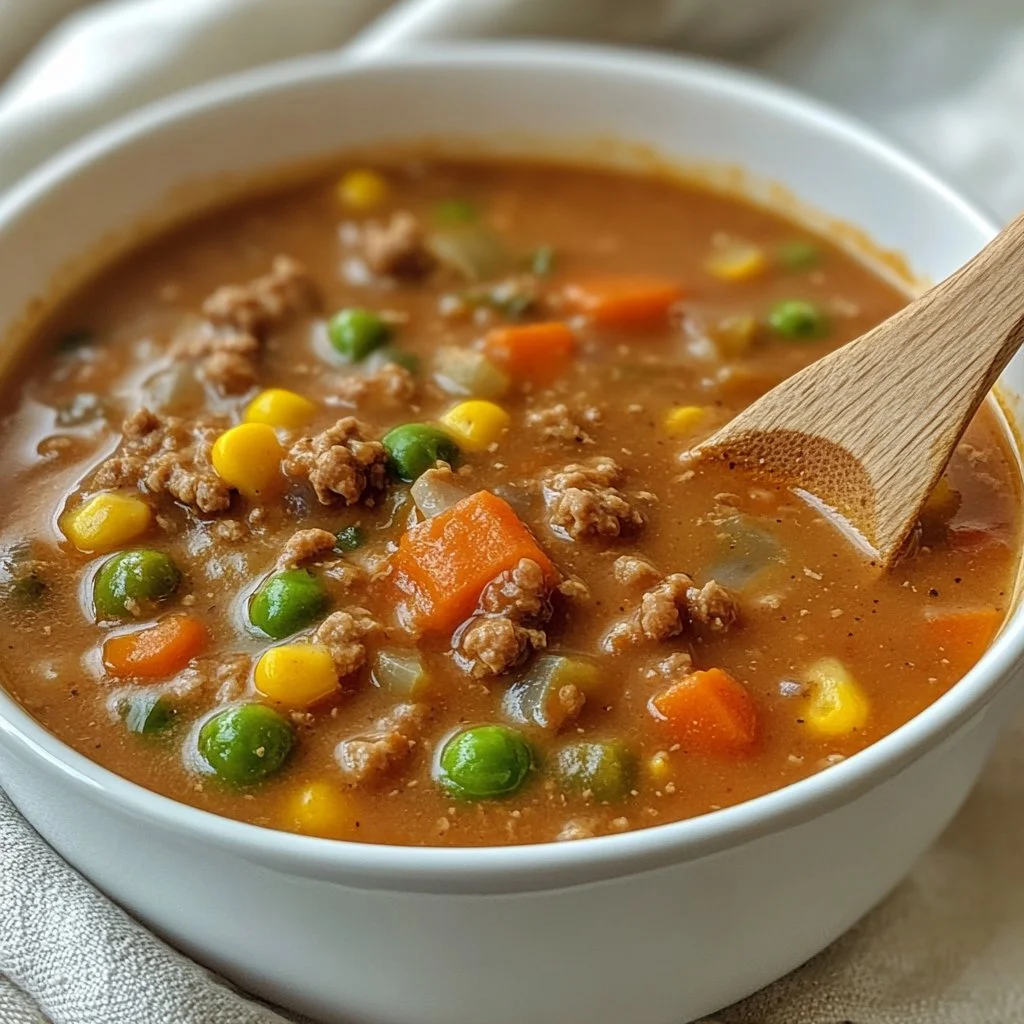 A comforting and hearty soup that combines the flavors of traditional Shepherd’s Pie in a warm broth, featuring ground beef, potatoes, and mixed vegetables.
