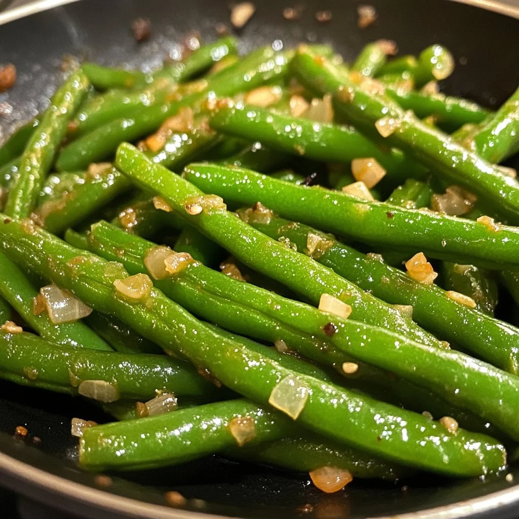 A quick and healthy side dish featuring sautéed green beans, garlic, and olive oil, perfect for any occasion.