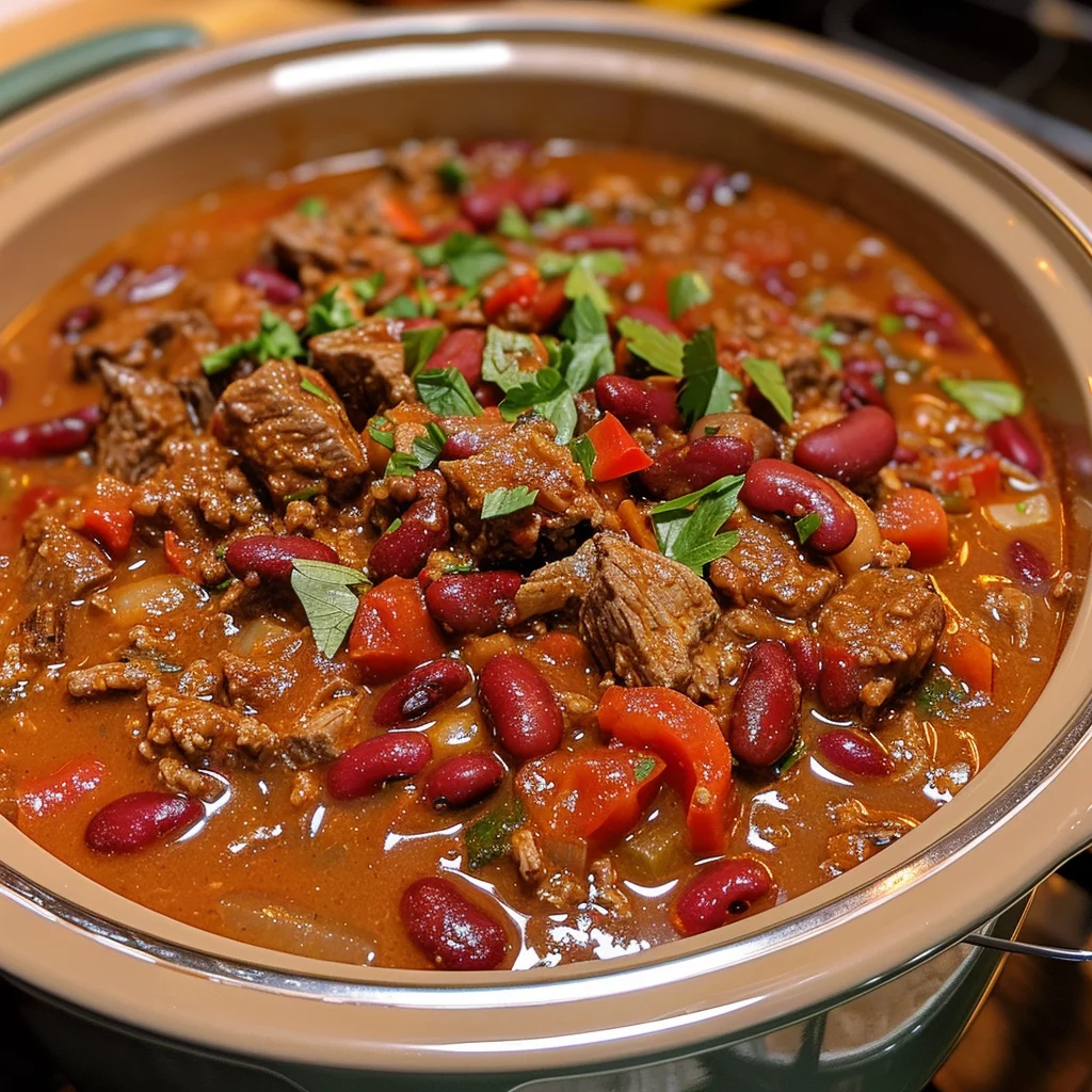 Transfer the browned beef and the aromatic mixture to your slow cooker. Add beef broth, diced tomatoes, tomato paste, and the beans. Stir in the chopped bell peppers to complete the setup. Cover the slow cooker, set it on low for 8-10 hours or high for 4-5 hours, and let the magic happen. This hands-off cooking method allows you to attend to other tasks while anticipating the final, flavorful result.