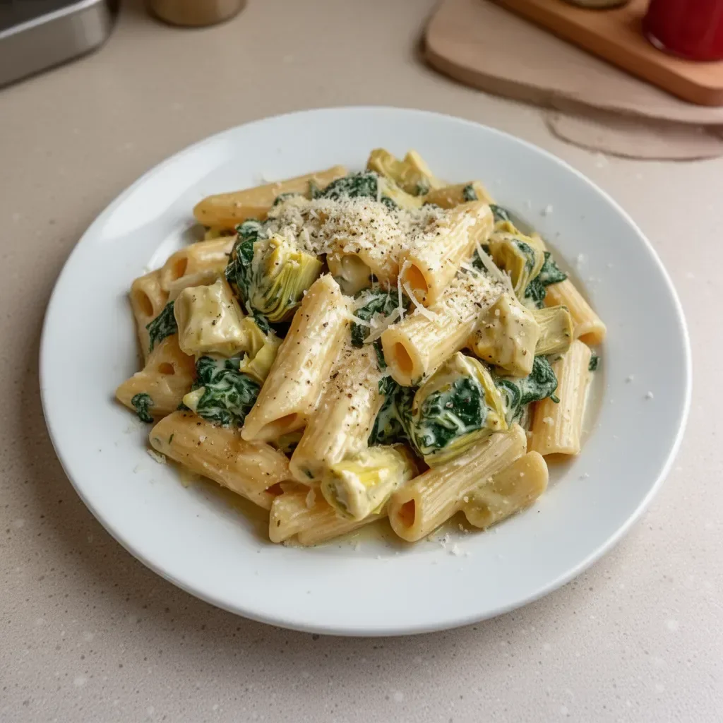 A creamy and vibrant pasta dish inspired by the classic spinach artichoke dip, perfect for any day of the week.