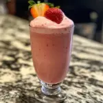 A refreshing strawberry frappe made with fresh strawberries, milk, and ice, perfect for summer days or any occasion.