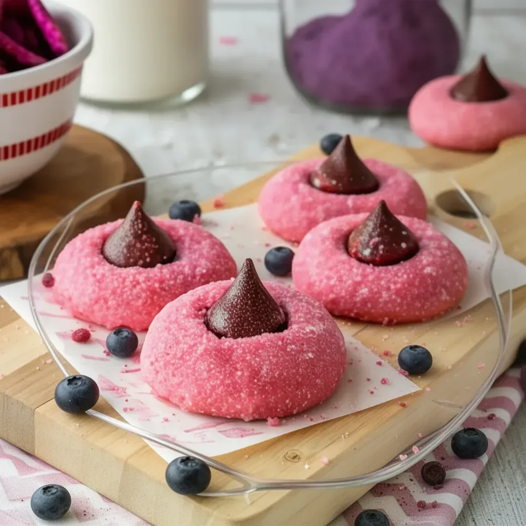 These Strawberry Kiss Cookies are a playful take on traditional butter cookies. Their soft, pink texture and delightful strawberry essence make them irresistible, especially with a melty chocolate kiss nestled in the center. Nothing compares to the memory of breaking one open, watching the chocolate slightly ooze, and savoring that first bite. The confectionery sweetness balances perfectly with the berry undertones, creating a cookie that feels both nostalgic and fresh.