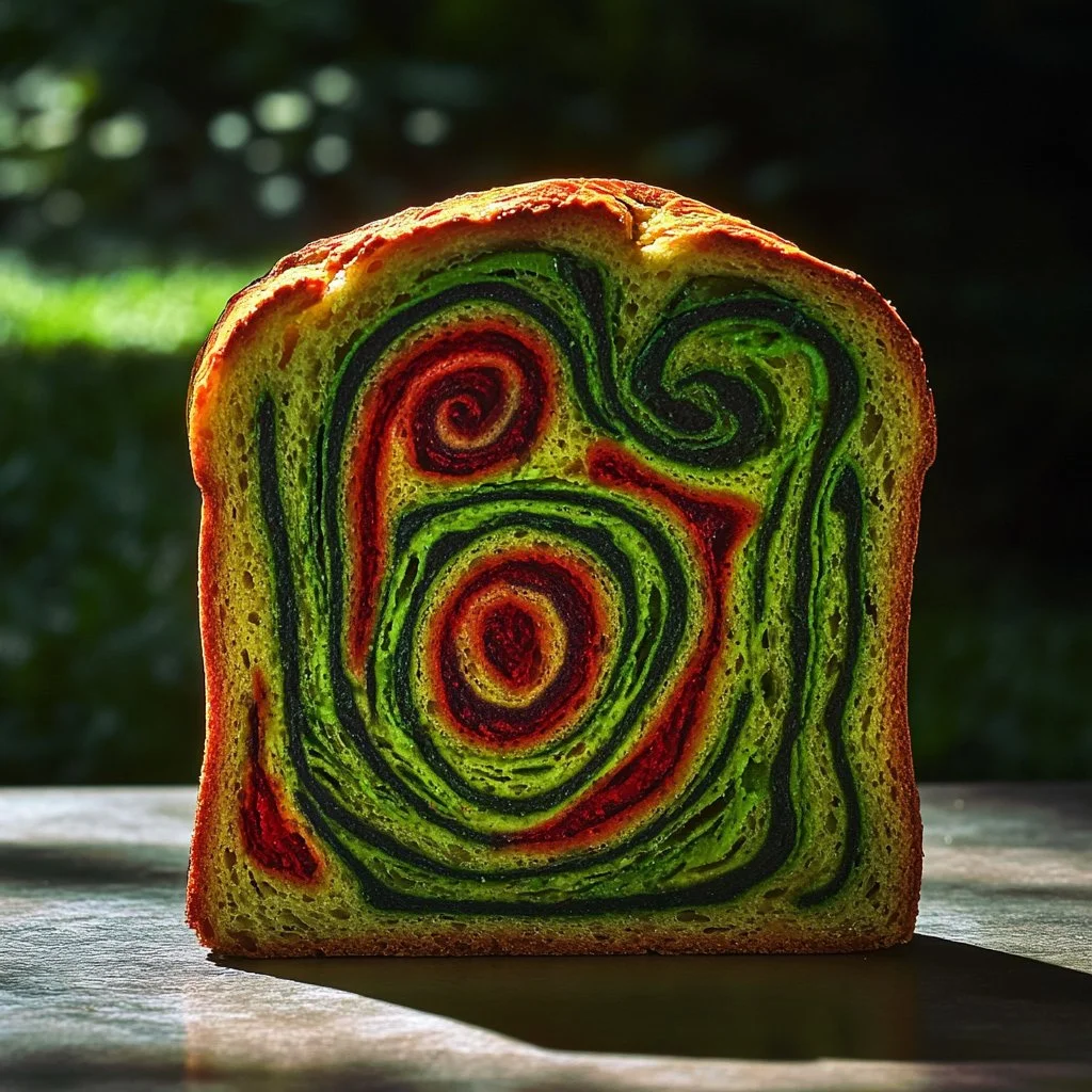 Presentation adds an element of elegance to this home-baked loaf. Slicing into the golden crust reveals a vibrant green and pink interior, captivating the eyes of all who see it. Serve slices warm, drizzled with a touch of honey or a smear of butter. The rich flavors harmonize beautifully with a range of accompaniments.