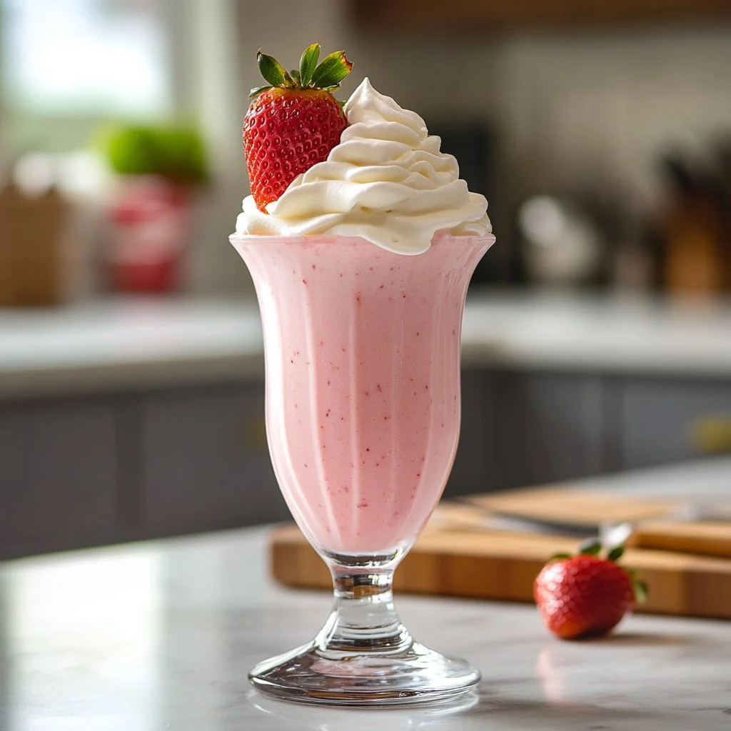 A refreshing strawberry milkshake made with fresh strawberries, creamy vanilla ice cream, and milk. Perfect for hot summer days!