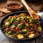 With the tasty combination and easy preparation, sweet chili ground beef and Brussels sprouts becomes a perfect addition to your family’s recipe repertoire. Embrace the warmth of home cooking with this delightful dish.