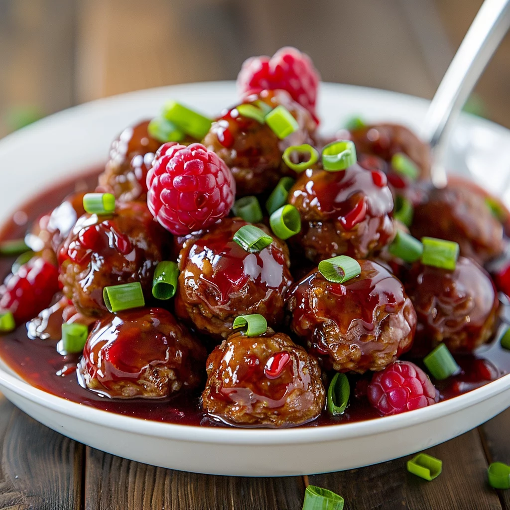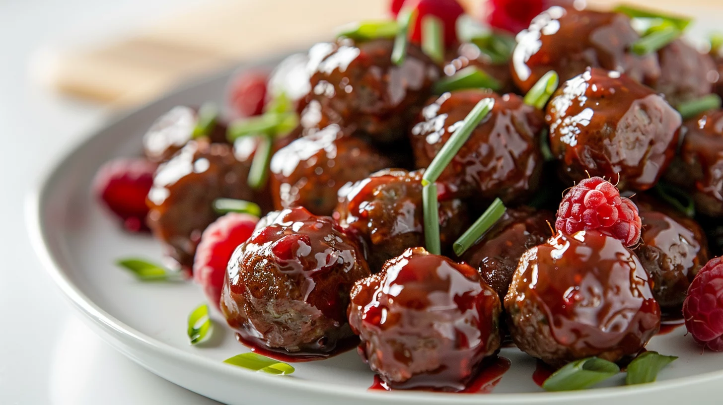 - Mix the sweet chili sauce with the raspberry preserves, then pour the mixture over the meatballs.