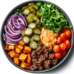 The Sweet Potato Burger Bowl brilliantly combines health, simplicity, and mouthwatering flavors, leaving everyone eager for seconds. Enjoy crafting this dish and sharing it with loved ones.