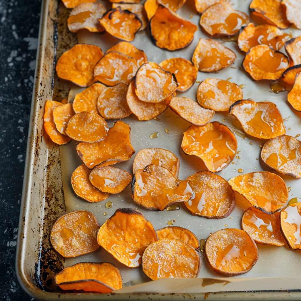 As I tossed the slices in olive oil and maple syrup, I could already imagine the delightful crispiness that awaited. The cayenne pepper added a hint of heat, elevating the natural sweetness of the potatoes. I knew these sweet potato chips would not just be a snack, but a journey back to those joyful kitchen moments.