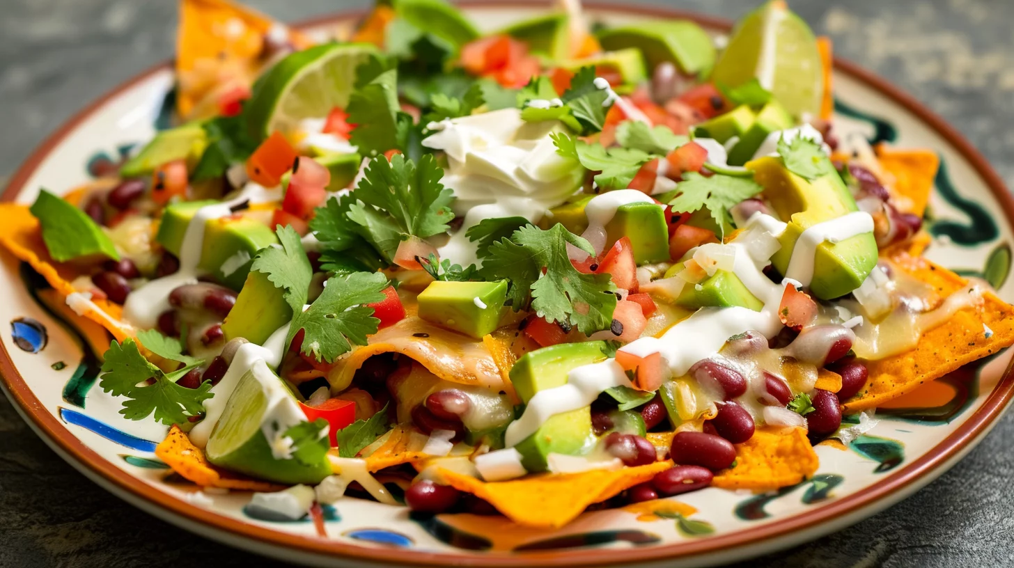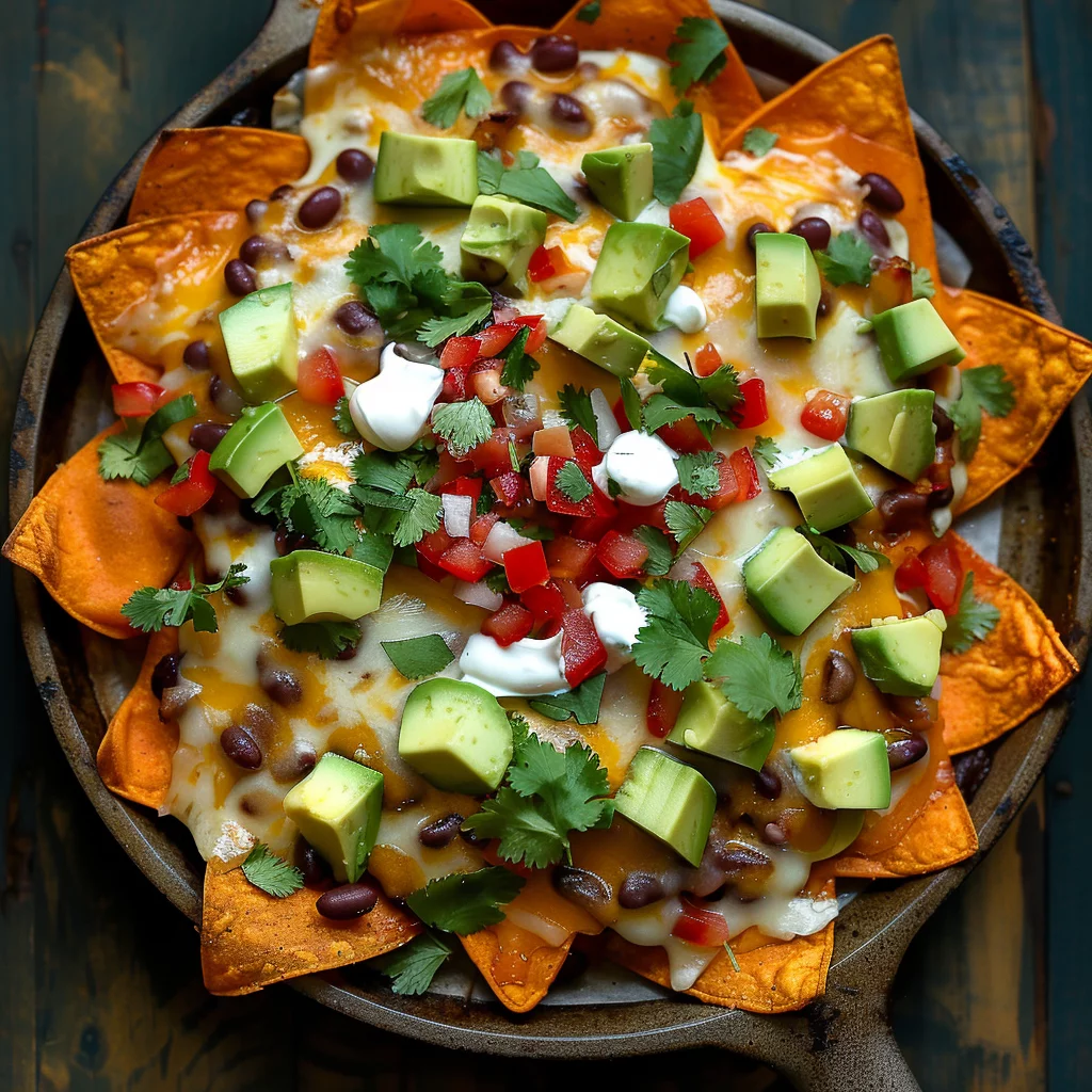 Top the nachos with diced avocado and a few spoonfuls of coconut cream. This adds a rich, creamy element that balances the spices. A sprinkle of fresh cilantro and a squeeze of lime juice bring freshness and vibrancy to the dish.