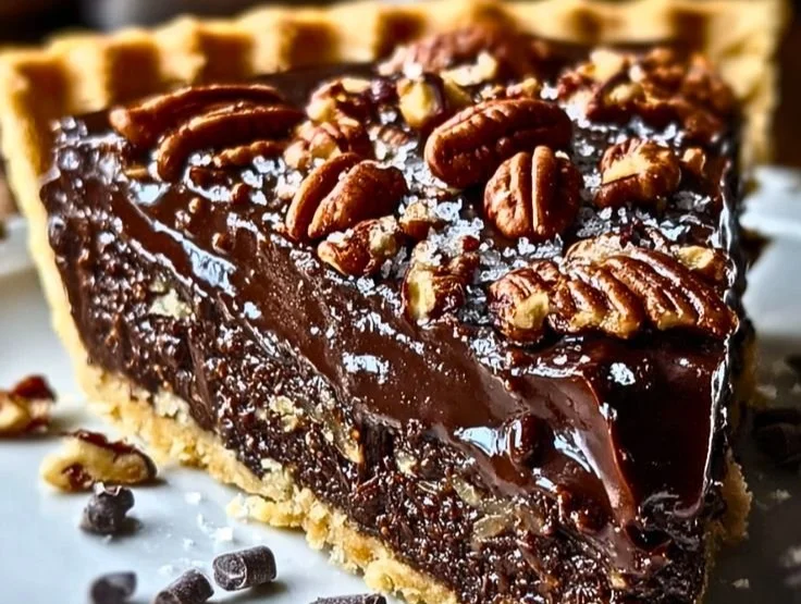 A delightful chocolate and pecan pie that embodies warmth and nostalgia, perfect for family gatherings.