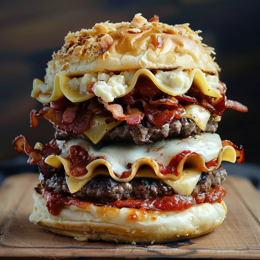 Indulge in the ultimate comfort food with our savory Bacon Lasagna Crunch Burger recipe! Learn how to create this delicious and satisfying dish today.