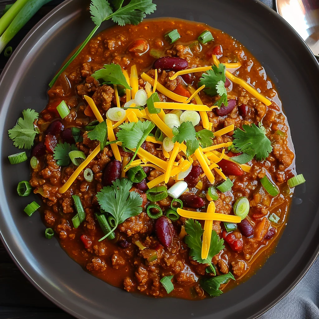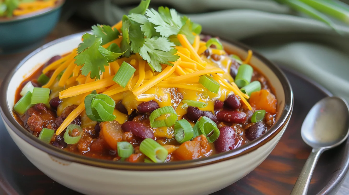 Presentation matters, even with a rustic dish like chili. Serve it in warm bowls, garnished with your favorite toppings. Cheddar cheese, green onions, and cilantro add color and flavor, enhancing both the visual appeal and taste.
