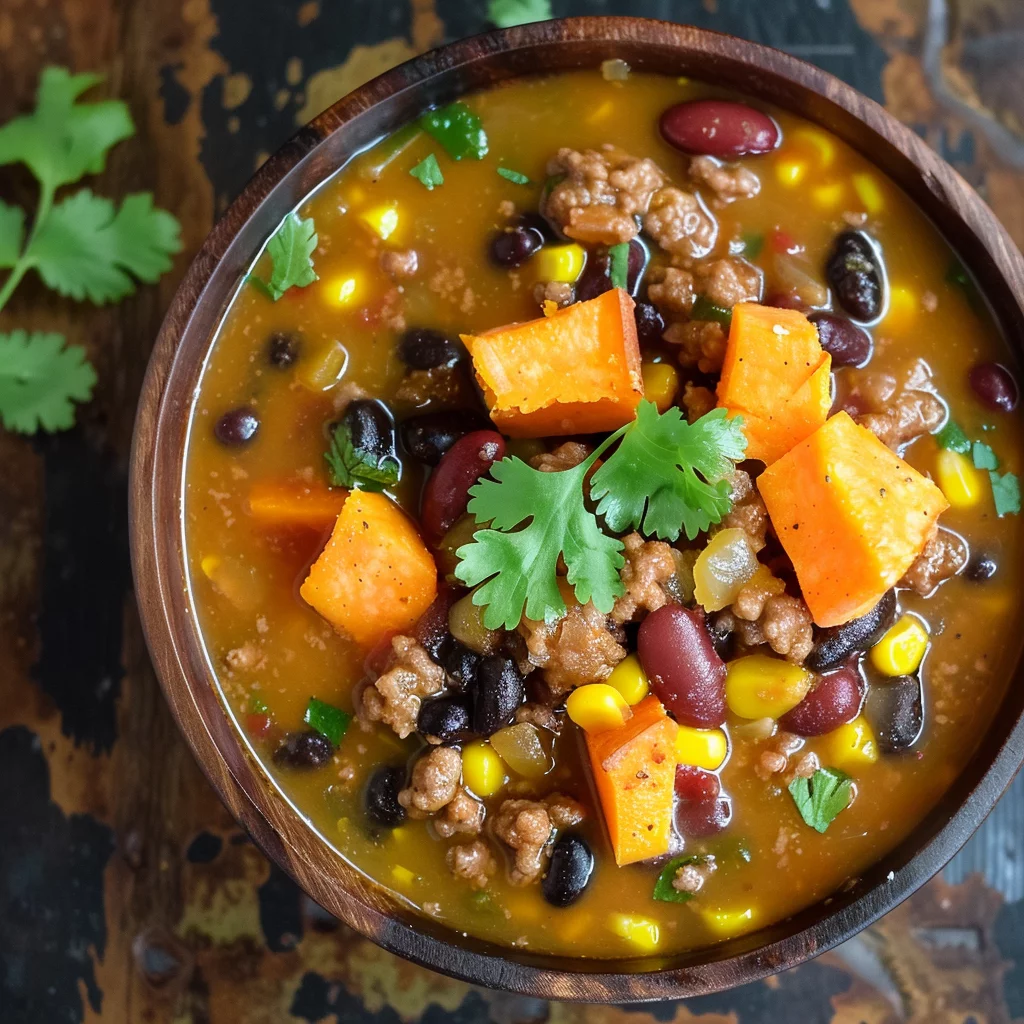 Achieving the perfect sweet potato chili involves finding the right balance between sweetness, spice, and texture. Ensure each component is cooked to perfection, with the sweet potatoes tender yet firm enough to hold their shape. The ground beef should be thoroughly cooked and crumbly, integrating seamlessly with the beans and corn.