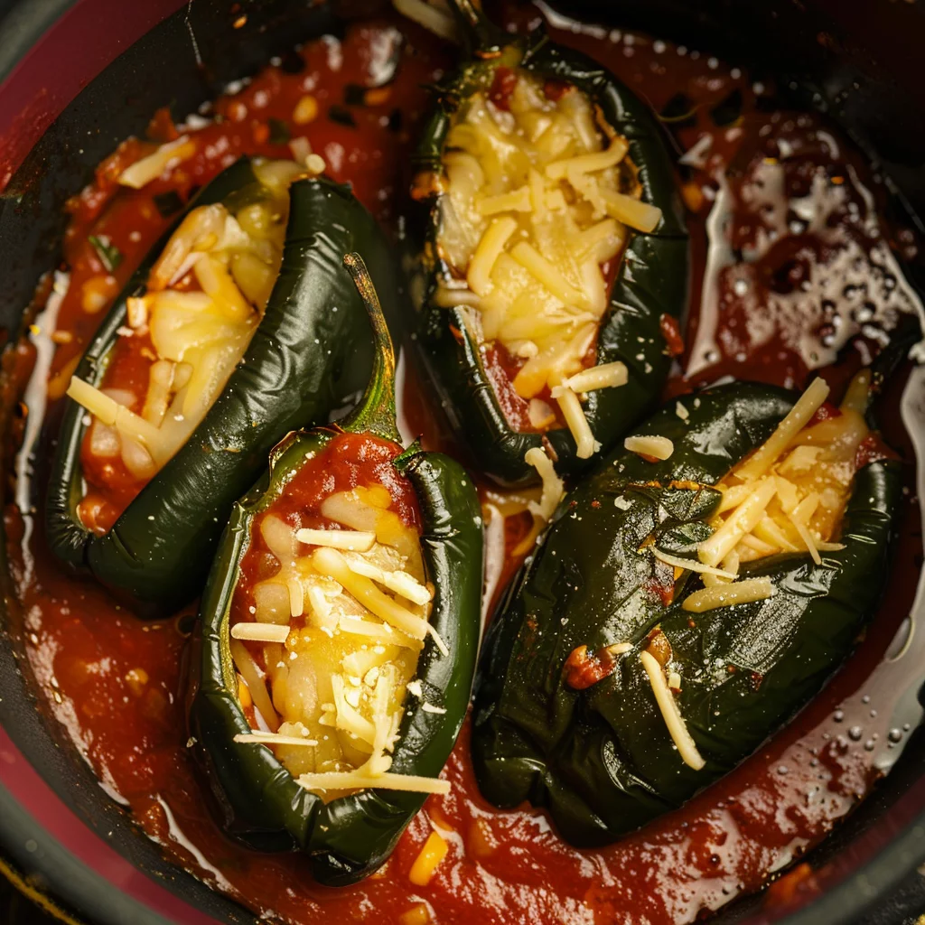 - Present the peppers by placing them atop a layer of the tomato sauce on a plate.