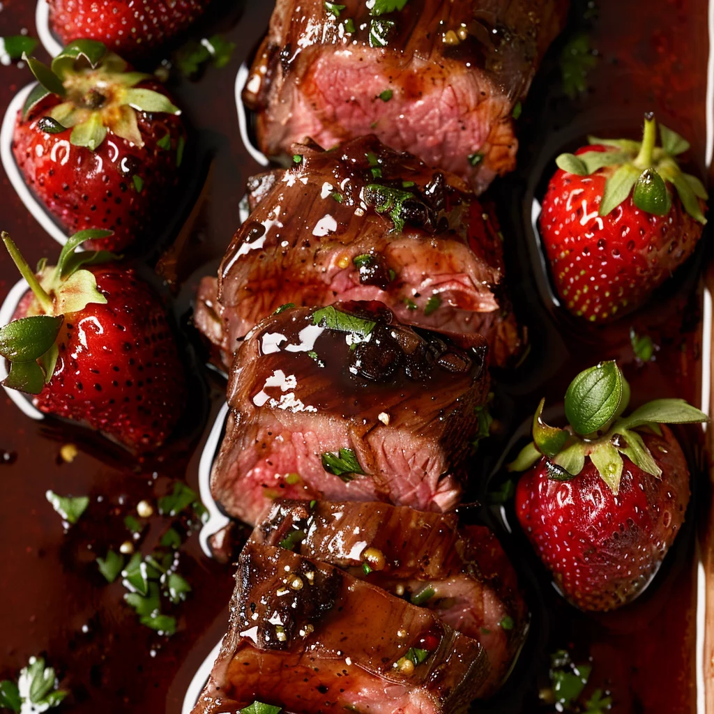 The honey-balsamic strawberry glaze is the star of this dish, providing a delectable contrast to the savory venison. As you simmer the strawberries with apple cider vinegar and maple syrup, the natural sweetness and acidity meld into a velvety sauce.
