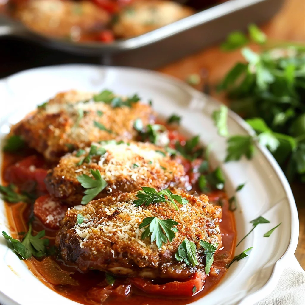 The presentation of Venison Parmesan Chickenstyle is an opportunity to showcase your culinary skills. Arrange the slices neatly on a platter, allowing the golden crust to shine. The vibrant red of the tomato sauce and the sprinkle of fresh parsley create a visually appealing dish that invites everyone to dig in. For a complete meal, consider pairing it with a simple side salad or buttery garlic bread.