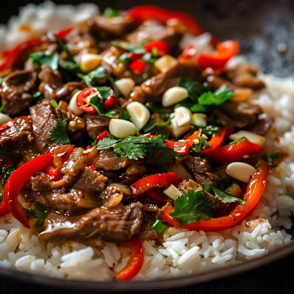Timing is crucial in stir frying. Add ingredients based on their cooking times, starting with those that require more time to soften, such as bell peppers and chiles. Follow with garlic, letting it release its aroma before reintroducing the beef. Stir-fry everything together, allowing the flavors to meld seamlessly. Finally, incorporate cilantro and a touch of soy sauce, completing the dish with a drizzle of sesame oil for added depth.