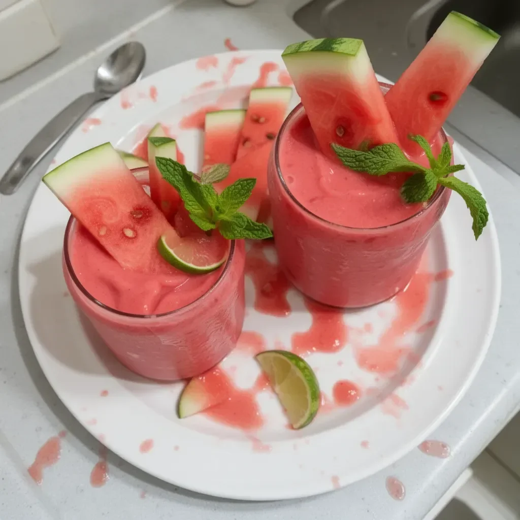 A refreshing watermelon smoothie perfect for summer, featuring sweet watermelon, tangy lime, and creamy banana.