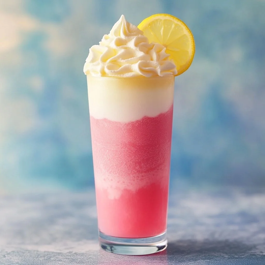 - Serve layered or stir together for a creamy float effect. Add an optional lemon slice, pink straw, or sprinkles for flair.
