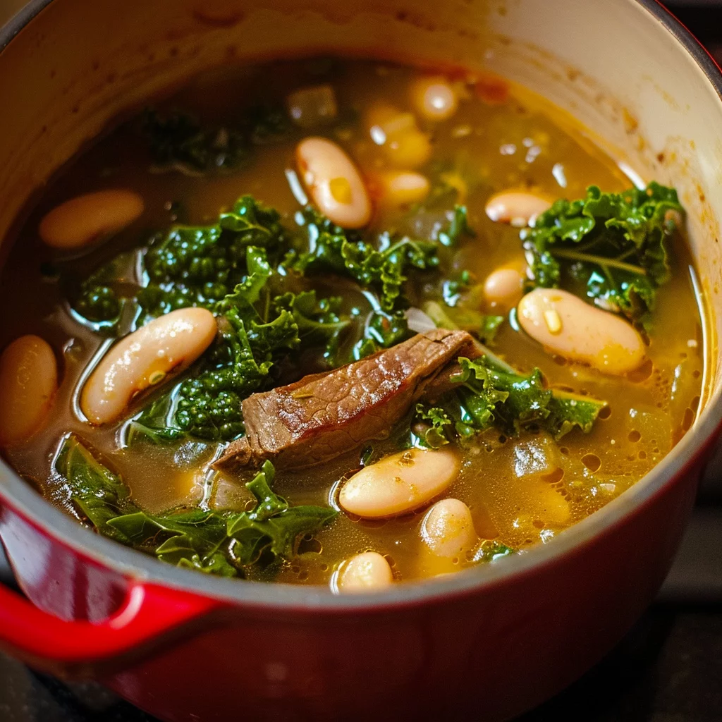The combination of white beans and kale creates a hearty base, while the beef broth adds richness and depth. I often find myself returning to this recipe, not just because it’s delicious, but because it’s a testament to how a few simple ingredients can create an unforgettable meal. This is what I love about cooking—each dish tells a story, and this soup is no exception.